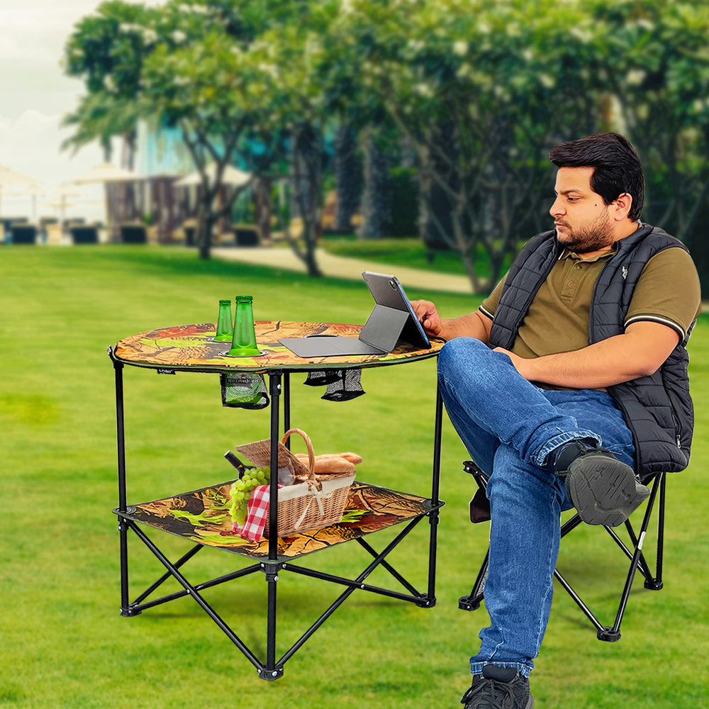 - Convenient Table Features: Enhance your outdoor dining experience with the table's thoughtful design. It boasts a spacious 70cm diameter table top, accompanied by four drink holders for beverages and a handy storage layer. Keep your essentials within arm's reach, whether it's bags, baskets, or other belongings